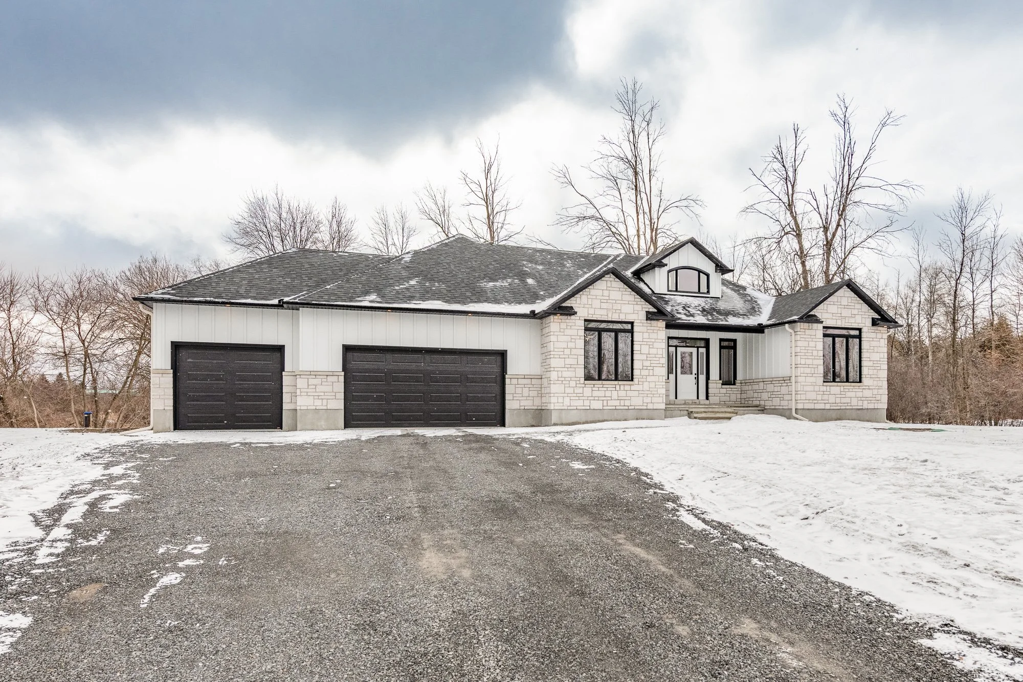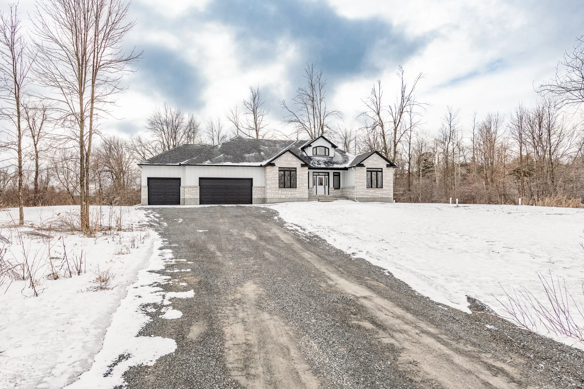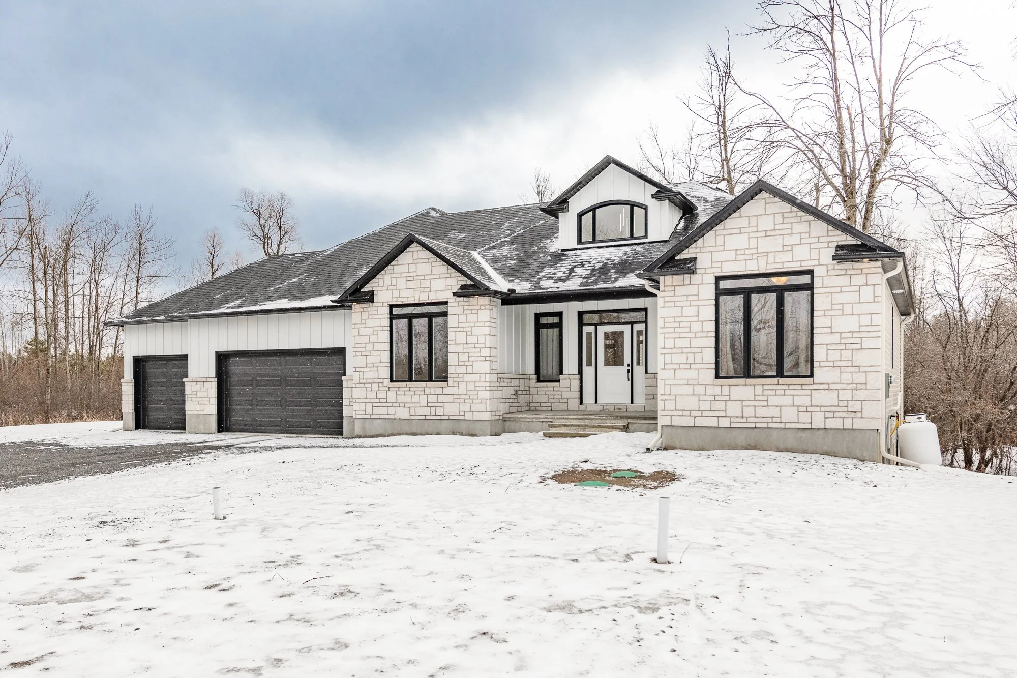Description: A statement of modern luxury set on over 2 acres. This custom-built bungalow offers exceptional design, soaring spaces, and endless potential with an unfinished walkout basement ready for your vision. The thoughtfully designed layout features 3 generous bedrooms, including a private primary retreat set on its own wing with a spa-like ensuite and expansive walk-in closet. The main living area impresses with 9' ceilings and a stunning family room highlighted by a 12' vaulted ceiling. A dramatic front foyer welcomes you with an impressive 19' ceiling height, setting the tone for the home's grand scale. The chef-inspired kitchen is built for entertaining, anchored by a striking quartz waterfall island and walk-in pantry. Complete with an oversized 3-car garage, this property offers the perfect balance of luxury, privacy, and space just minutes from Ottawa.