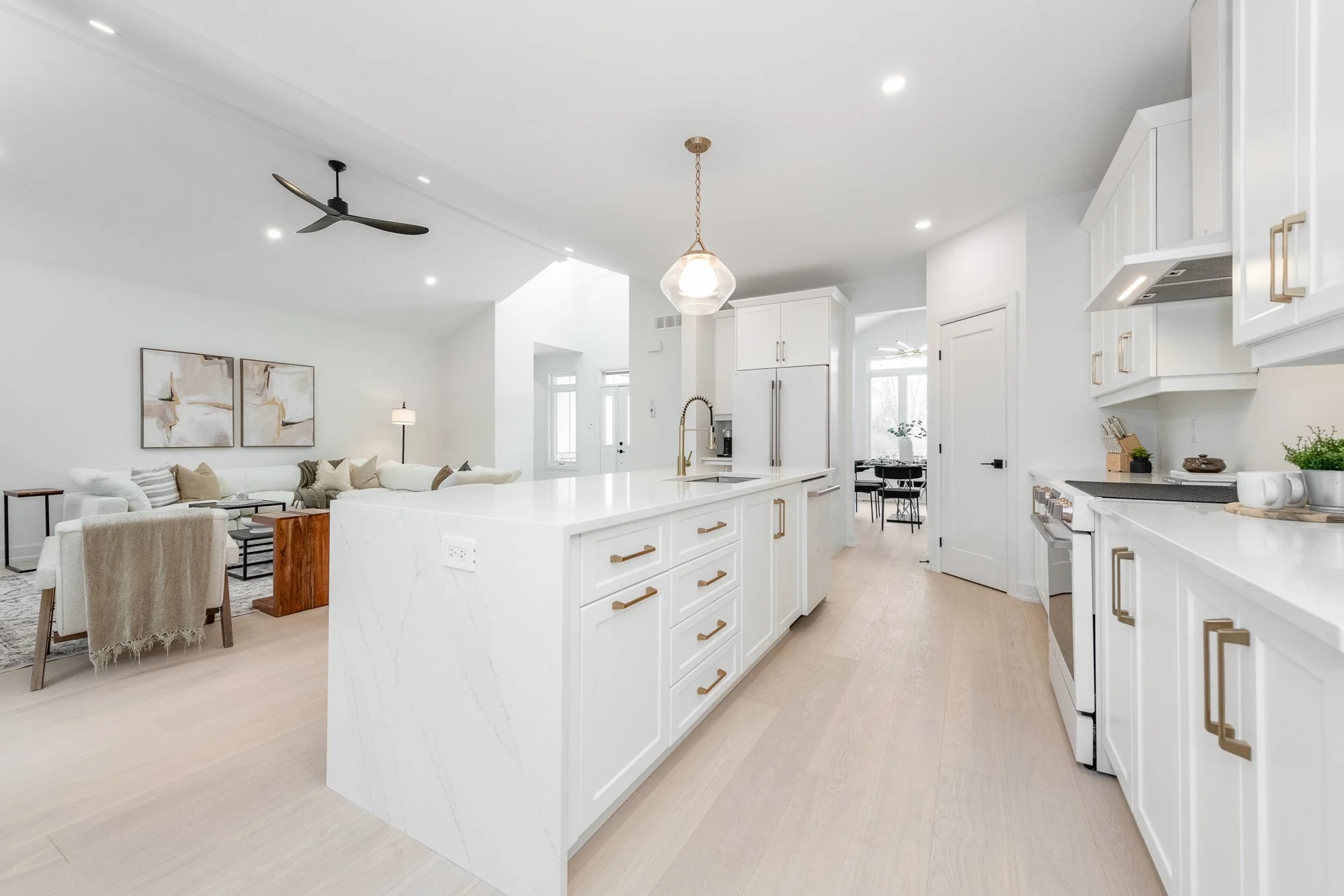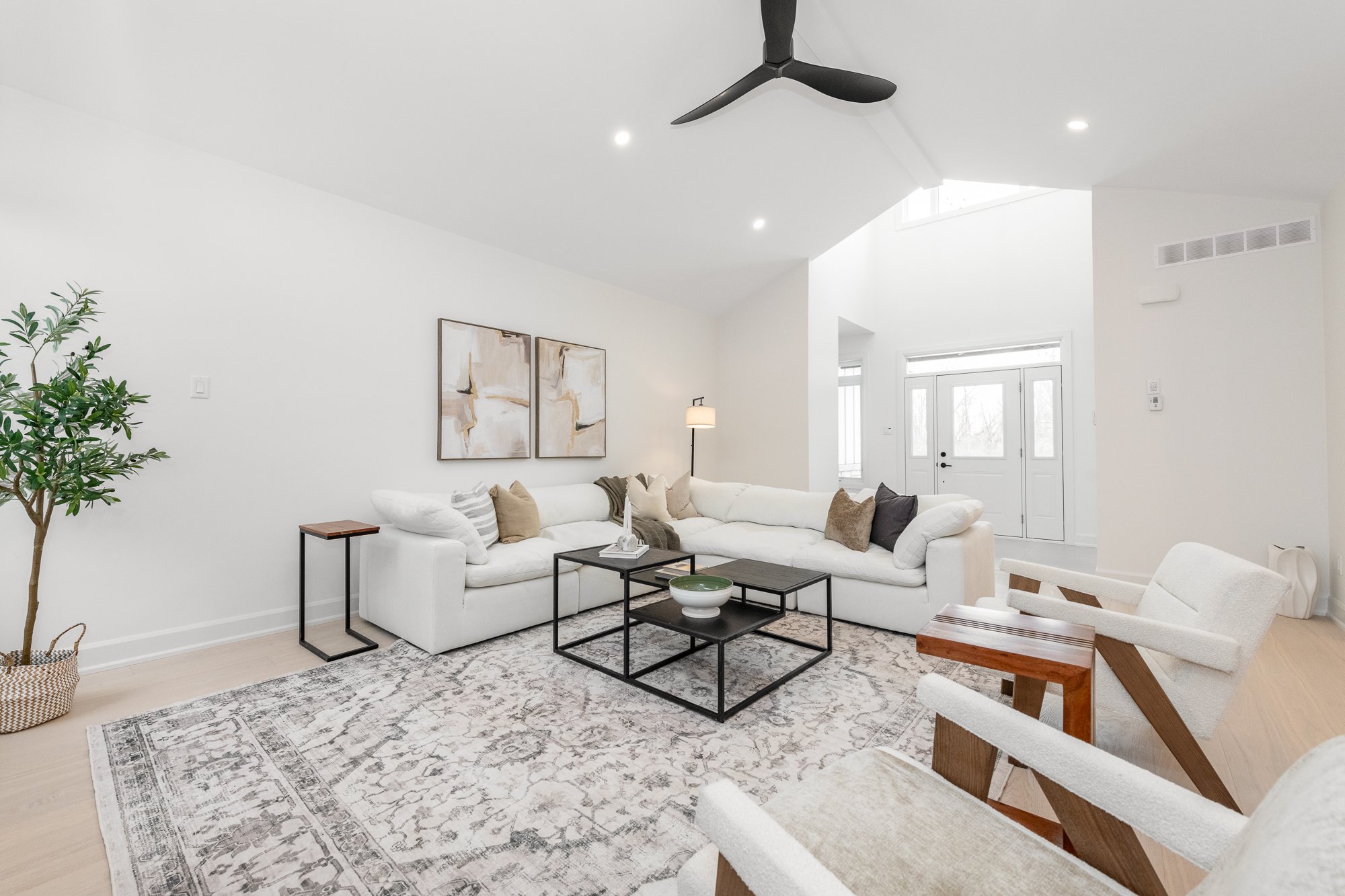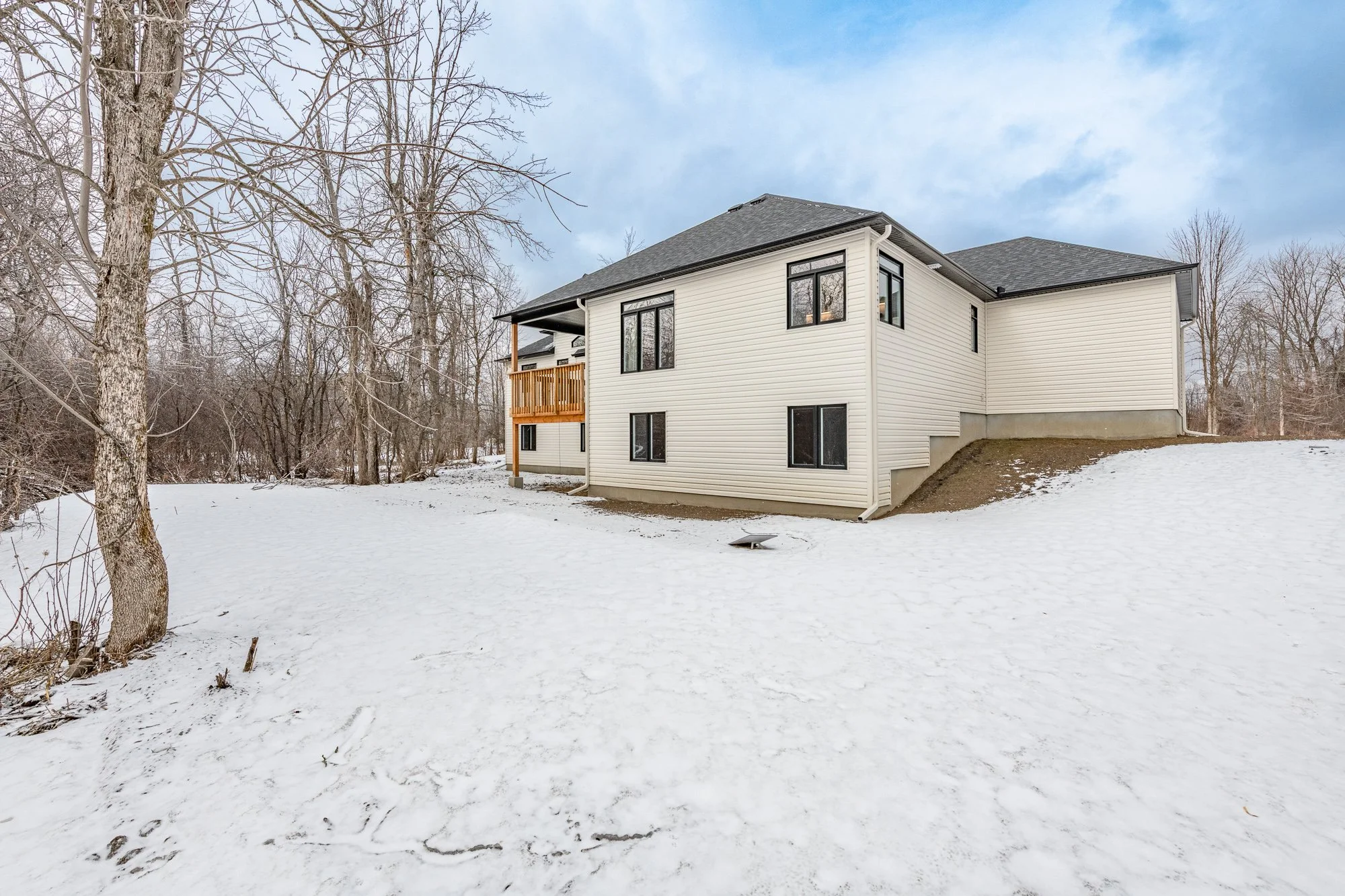 Description: A statement of modern luxury set on over 2 acres. This custom-built bungalow offers exceptional design, soaring spaces, and endless potential with an unfinished walkout basement ready for your vision. The thoughtfully designed layout features 3 generous bedrooms, including a private primary retreat set on its own wing with a spa-like ensuite and expansive walk-in closet. The main living area impresses with 9' ceilings and a stunning family room highlighted by a 12' vaulted ceiling. A dramatic front foyer welcomes you with an impressive 19' ceiling height, setting the tone for the home's grand scale. The chef-inspired kitchen is built for entertaining, anchored by a striking quartz waterfall island and walk-in pantry. Complete with an oversized 3-car garage, this property offers the perfect balance of luxury, privacy, and space just minutes from Ottawa.